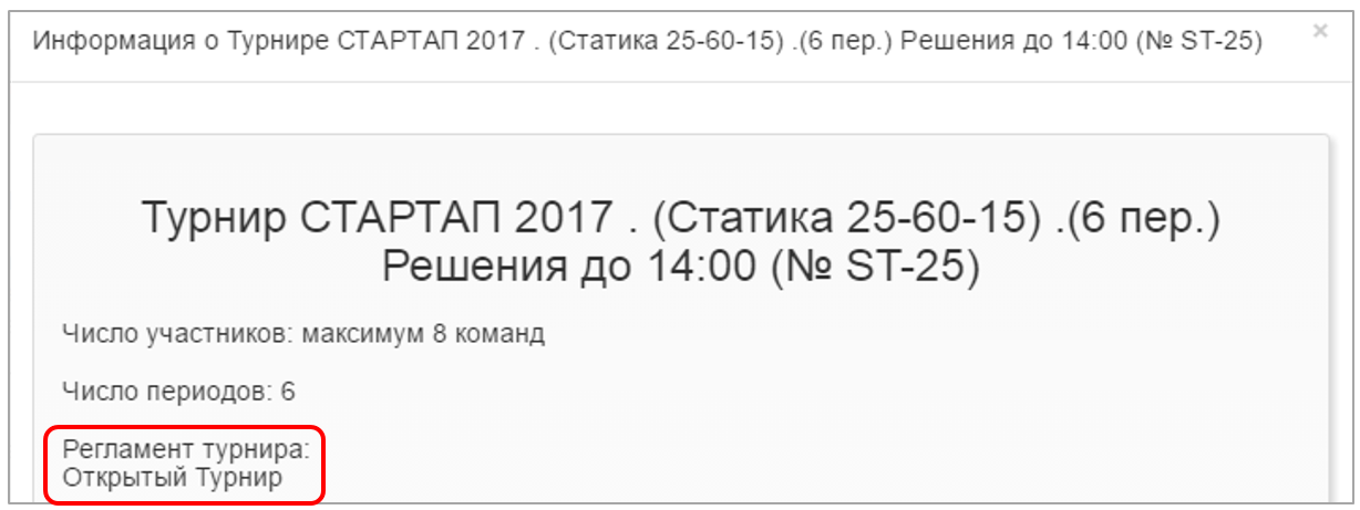 Информация о регламенте турнира содержится в Турнир-Инфо