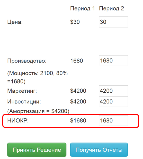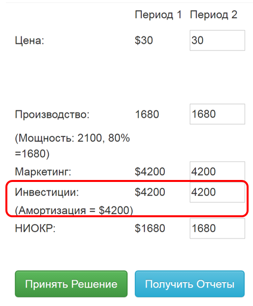 Вложения в инвестиции определят изменение мощности вашей фабрики Фирмы по окончании данного периода.