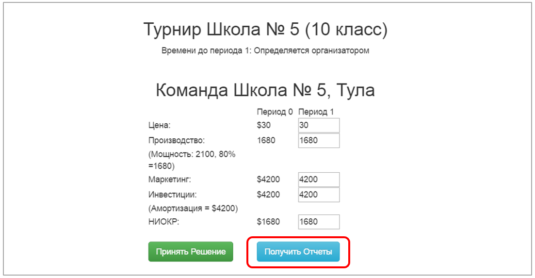 Для получения Отчетов Фирмы о сыгранных периодах нажмите кнопку «Получить Отчеты».